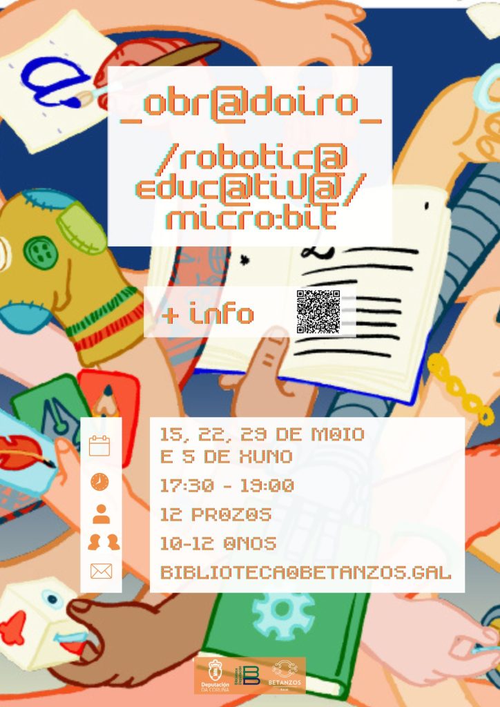 Durante os venres 15, 22 e 29 de maio e o venres 5 de xuño, en horario de 17:30 a 19:00h a Biblioteca de Betanzos desenvolverá o taller de robótica educativa Micro:Bit, organizado pola Biblioteca da Deputación da Coruña no seu esforzo de levar actividades a todas as bibliotecas da provincia.