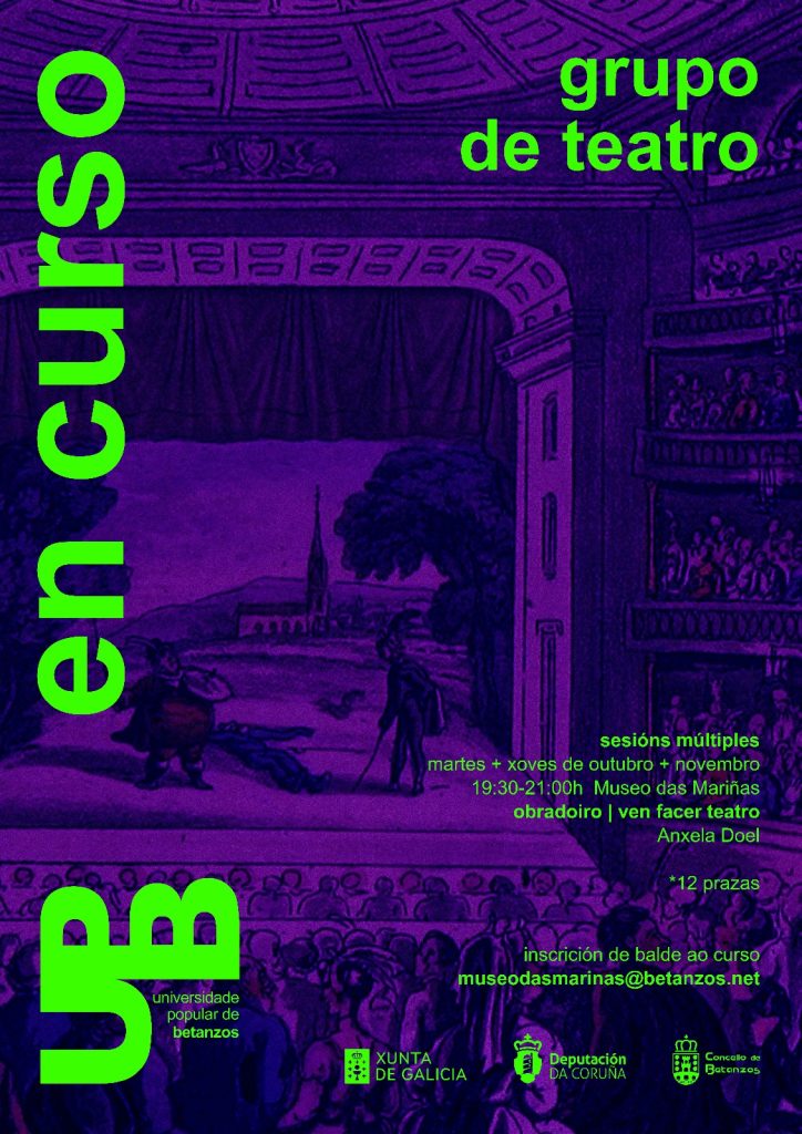 Os martes e xoves de outubro e novembro teremos ensaio do noso grupo de teatro propio, dirixido pola veciña Ángela Fernández.